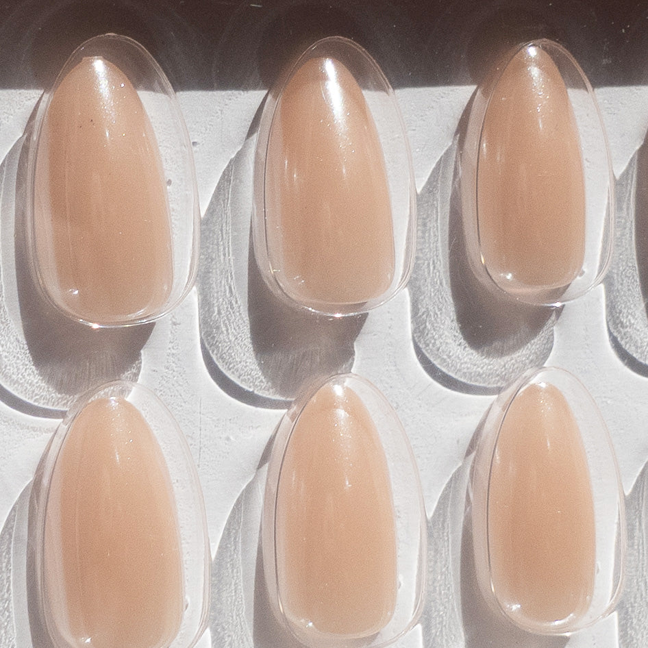 Elevate your manicure with the Oat Glazed Donut nail design, featuring a delicate light beige glaze that mimics the subtle charm of a glazed donut. Crafted on a short almond shape, this sophisticated style offers a refined yet playful look, perfect for those seeking understated elegance with a touch of whimsy.